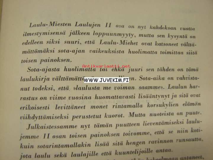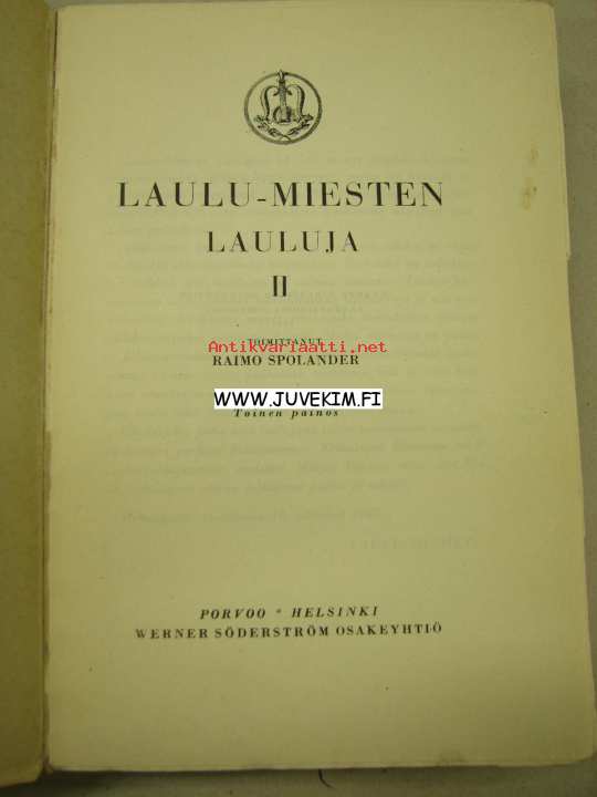 Spolander Raimo, WSOY, 1944 13 x 20 cm kirja. 201 laulua mieskuoroille.