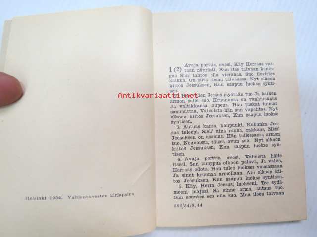 Sotilaan virsikirja 1954, kannessa leimaus "Laivastoasema" -Finnish army hymnbook / psalm book for soldiers