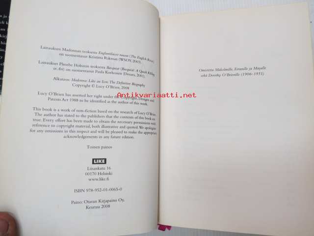 | Saatavilla | 1 kpl | | Julkaisuvuosi | 2008 | | Sivuja | 490 | | Painos | 2. | | Kunto | K3 | | Sidonta/painoasu | Sidottu (kansipaperit) | | ISBN | 978-952-01-0065-0 | | Kielet | Suomi |