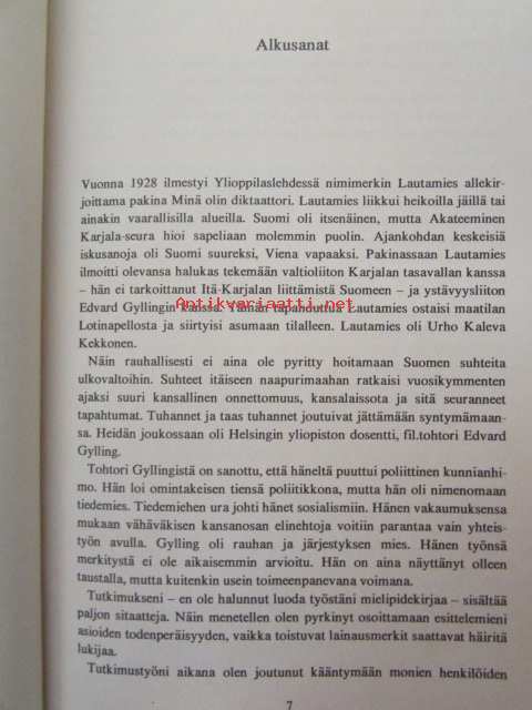 | Saatavilla | 1 kpl | | Julkaisuvuosi | 1976 | | Sivuja | 376 | | Kunto | K3 | | Sidonta/painoasu | Sidottu (kansipaperit) | | ISBN | 951-1-04043-X | | Kielet | Suomi |