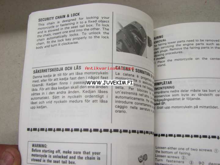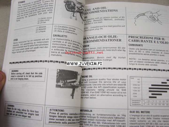 Yamaha YFM80RV Owner´s manual, Manuel du proprietaire, Manual del propietario -moottoripyörä, käyttöohjekirja englanniksi, italiaksi, espanjaksi