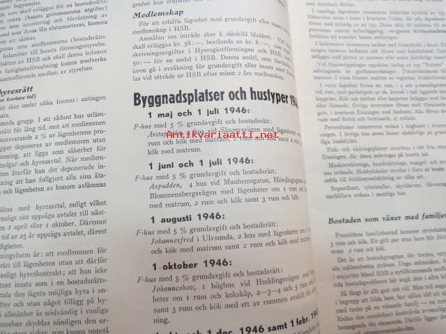 Vår Bostad - HSB-byggen 1946 (i Sockholm) -byggnadsplatser och hustyper mm. Årstaplatån, Aspudden, Johannesfred - Ulvsunda, Johanneshov, Storeby - hus och lägenhetstyper -swedish construction