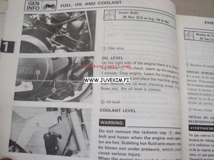 Yamaha YFM80RV Owner´s manual, Manuel du proprietaire, Manual del propietario -moottoripyörä, käyttöohjekirja englanniksi, italiaksi, espanjaksi