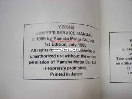 Yamaha YZ80 (S) owner´s service manual -omistajan huolto-ohjekirja