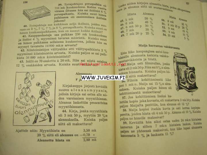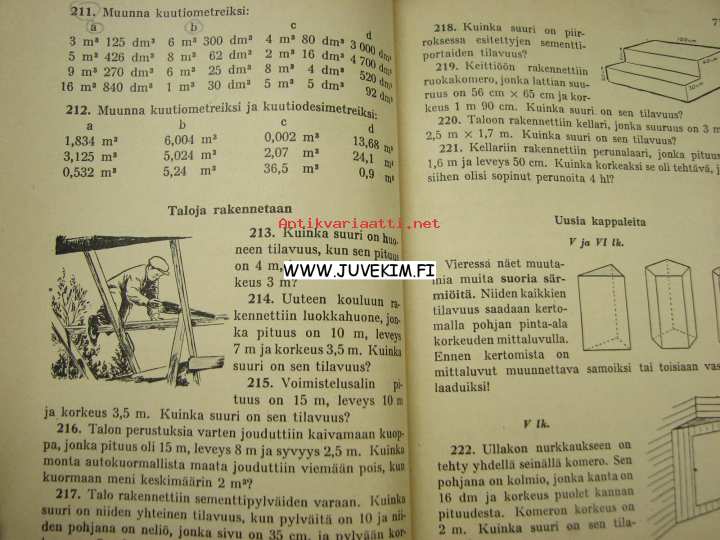 Pajunen Väinö, Elimäki Lauri, WSOY, 1963 15 x 20 cm kirja. Maaseudun kansakoulujen laskennon ja mittausopin oppikirja, kuvittanut Olavi Vikainen.
