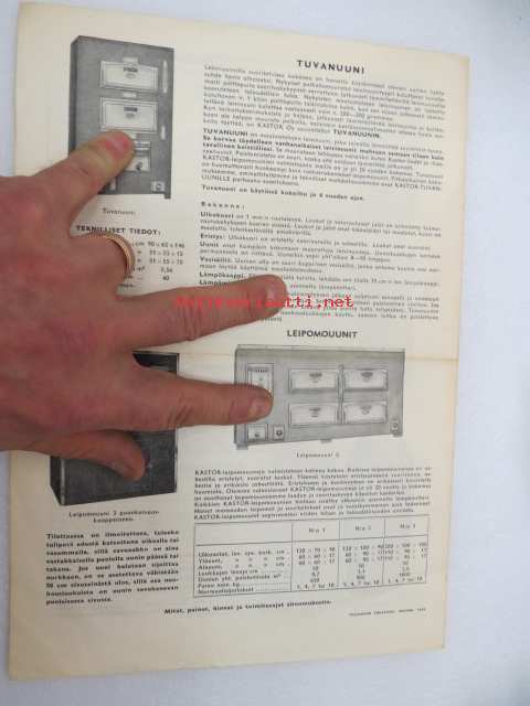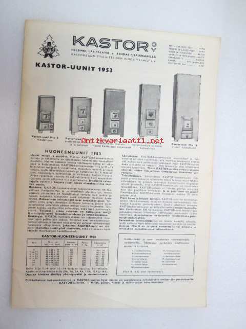 Kastor-uunit 1953 -myyntiesite / brochure of ovens