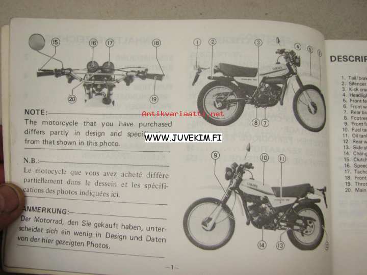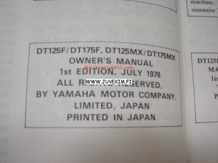 Yamaha DT125 / DT175F / DT125MX / DT175MX -käyttöohjekirja