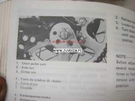 Yamaha TT-R110E(X) Owner´s manual -moottoripyörä, käyttöohjekirja englanniksi, ranskaksi ja saksaksi