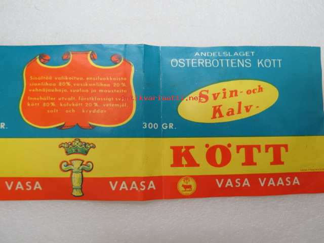Osuuskunta Pohjanmaan Liha / Andelslaget Österbottens Kött - Sian- ja vasikanlihaa / Svin- och kalvkött -etiketti / label