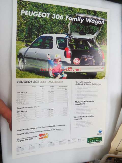 Peugeot 306 ABS-mallisto 1998 -myyntiesite / brochure