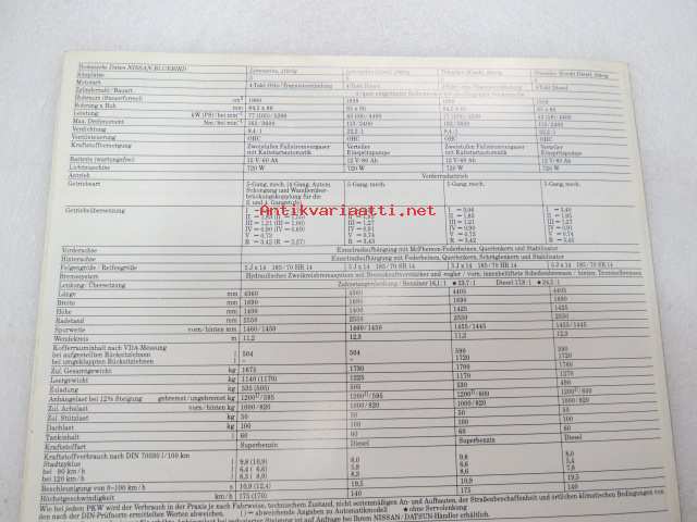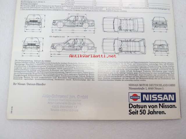 Nissan Bluebird 1984 -myyntiesite, saksankielinen / brochure in german