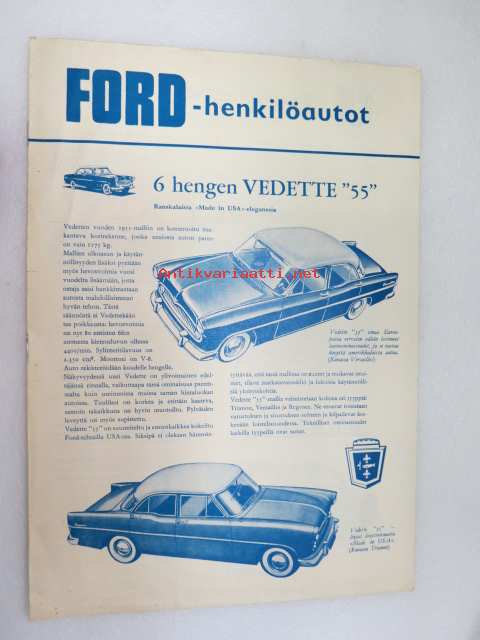 Ford henkilöautot 1955 Vedette "55", Zephyr Six, Consul, Anglia, Prefect, Taunus, FK-1000 Kleinbus, Customline, Fairlane, Thunderbird, Country Sedan, Lincoln,