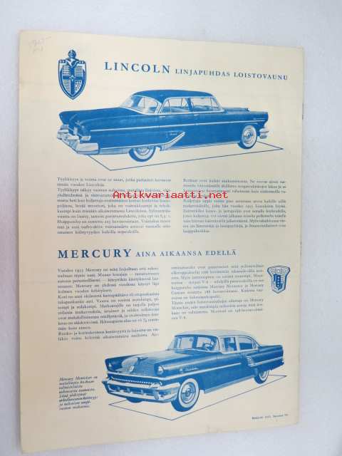 Ford henkilöautot 1955 Vedette "55", Zephyr Six, Consul, Anglia, Prefect, Taunus, FK-1000 Kleinbus, Customline, Fairlane, Thunderbird, Country Sedan, Lincoln, Mercury -myyntiesite / brochure