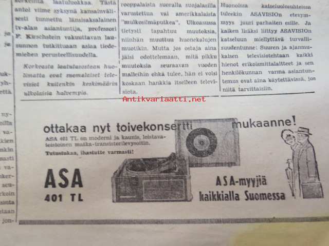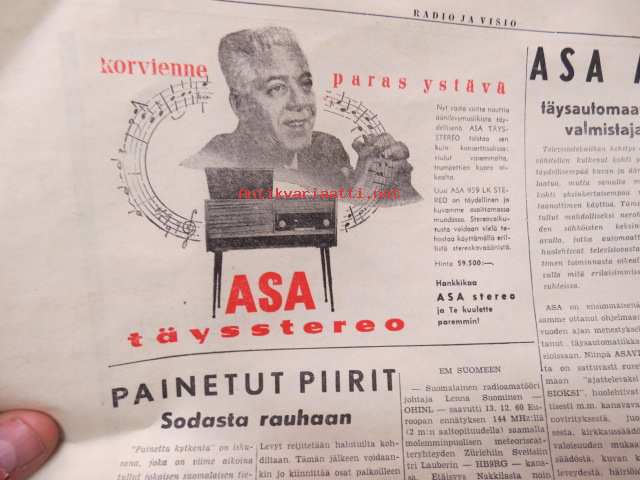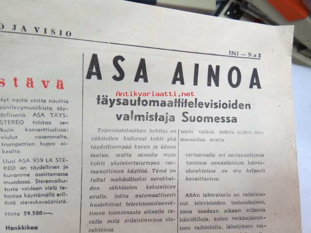 Radio ja Visio 1961 nr 3 - ASA Radio Oy mainoslehti / myyntiesite -radio manufacturer´s customer magazine / brochure