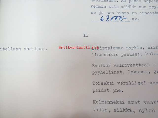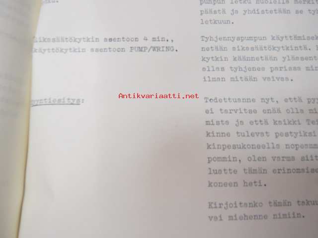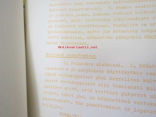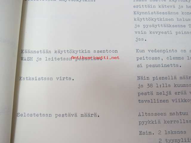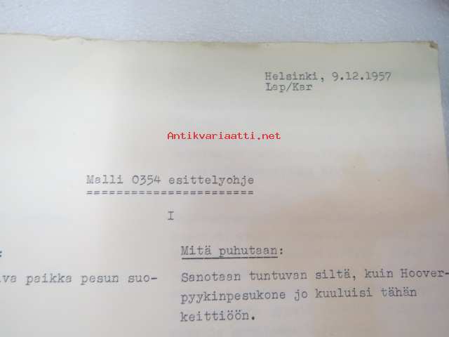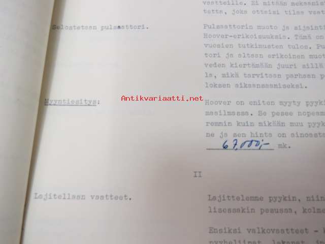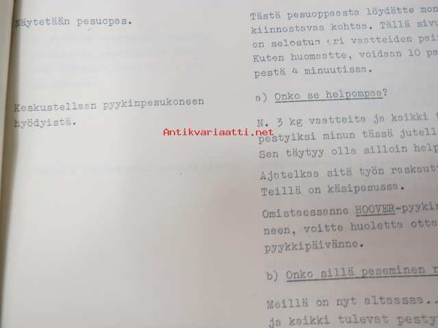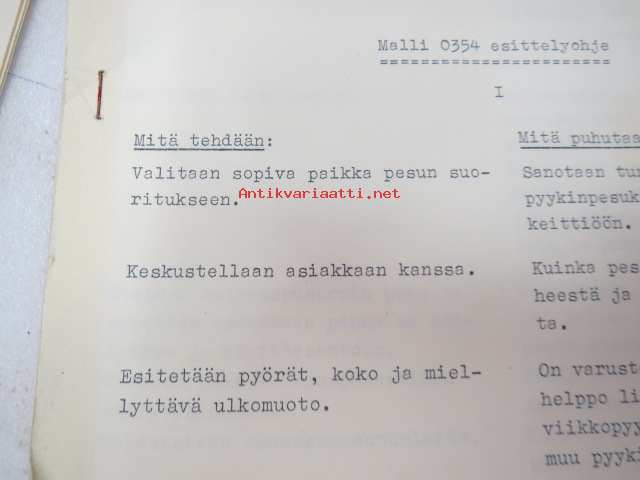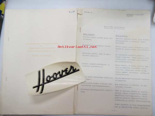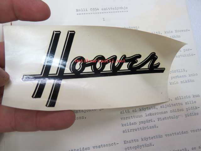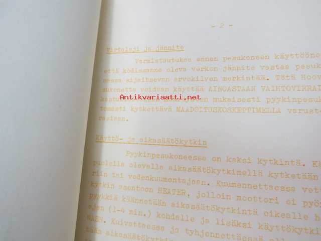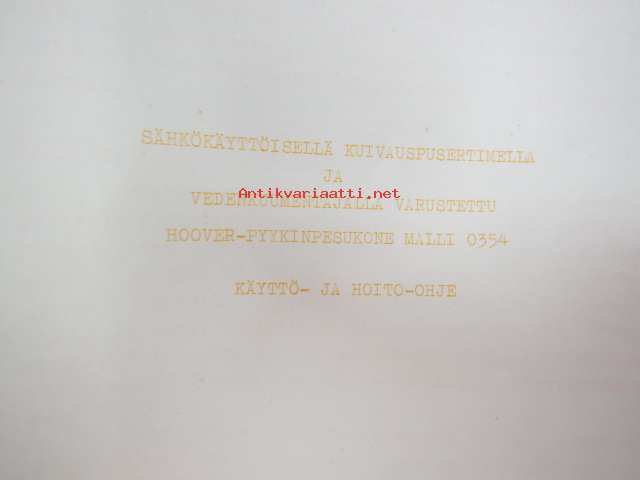 Hoover Oy pyykinpesukone Malli 0354 esittelyohje, Käyttö- ja hoito-ohje sekä Hoover-siirtokuva -washing machine instructions & salesman´s guide + decal, in finnish