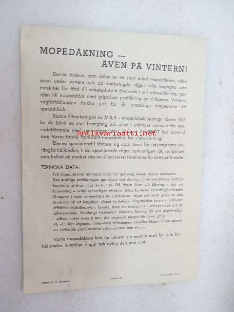 Semperit M & S däck för mopeder -rengasmainos / tyre brochure