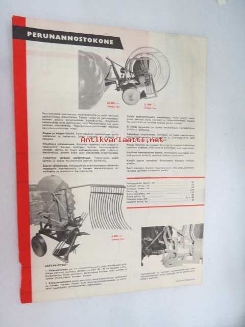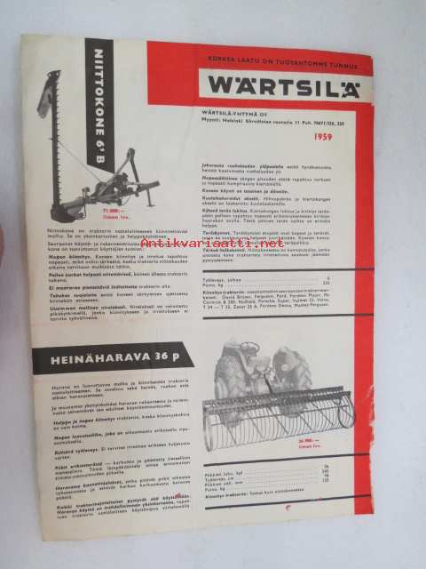 Wärtsilä heinäharava 36 p, perunannostokone 1959 -myyntiesite / brochure