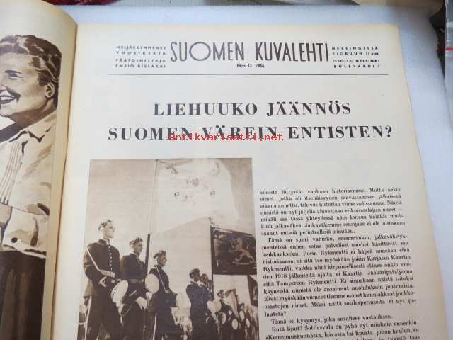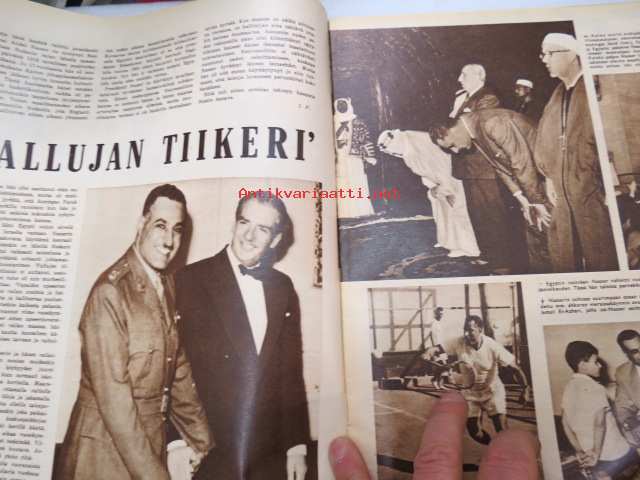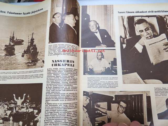 Suomen Kuvalehti 1956 nr 32, ilmestynyt 11.8.1956, sis. mm. seur. artikkelit / kuvat / mainokset; Kansikuva "Minä - Nasser - Fallujan Tiikeri", Ranska ei halua