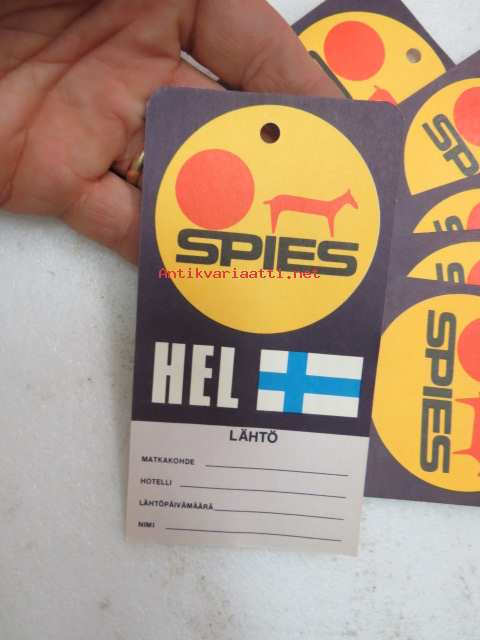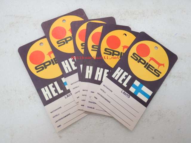 7 x 13 cm. Seuramatkojen osallistujien matkalaukkuihin tarkoitettuja, lähtö Helsingistä - paluu Helsinkiin, yhteensä 6 kpl