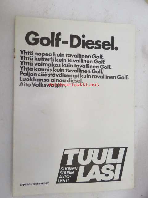 Volkswagen Golf-Diesel - Tuulilasi 2/77 Eripainos -myyntiesite / brochure