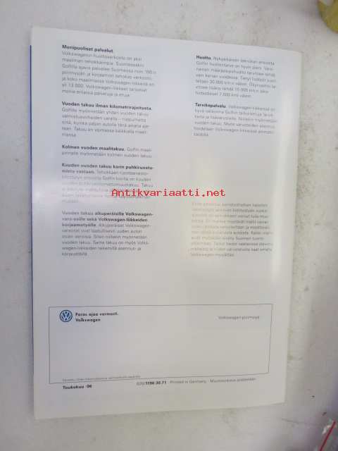 Volkswagen Golf 1996 -myyntiesite / brochure