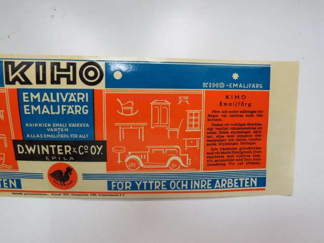 Kiho emaliväri / D. Winter & Co Oy -maalipurkin etikettipainate / label