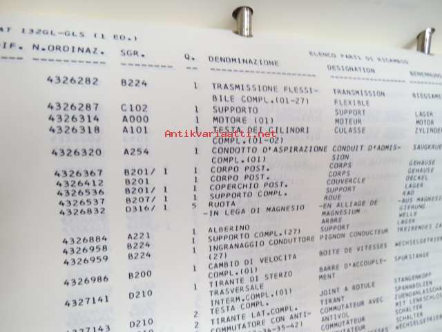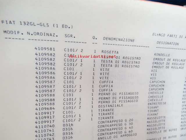 Fiat 132 GL, GLS Catalogo parti di ricambio / Catalogue de pièces détachèes / Ersatzteilekatalog / Spare parts catalog / Catálogo de piezas de repuesto -varaosal.