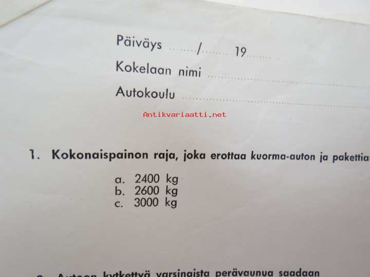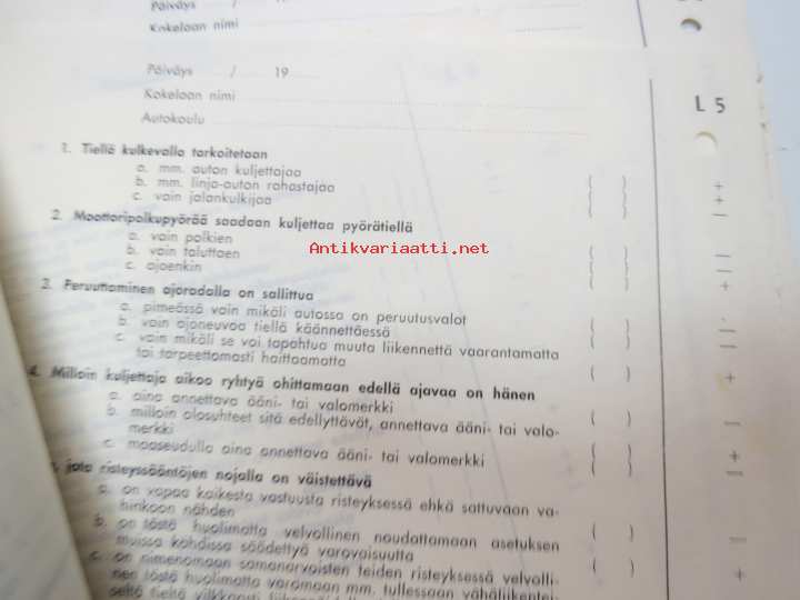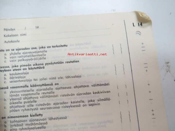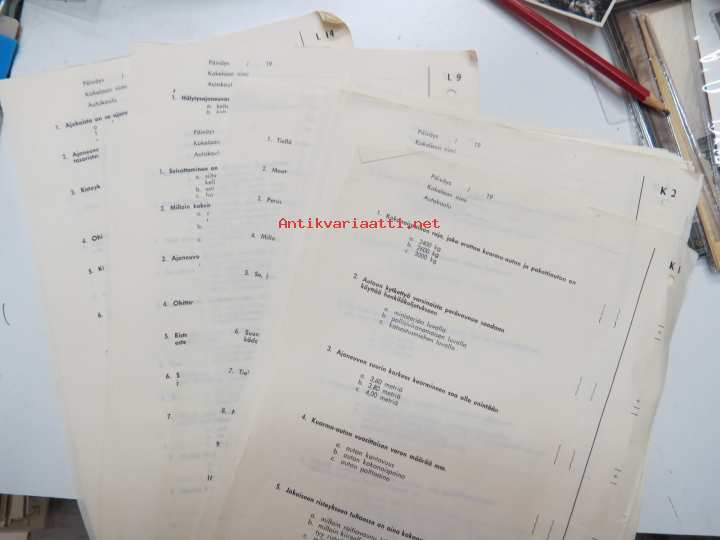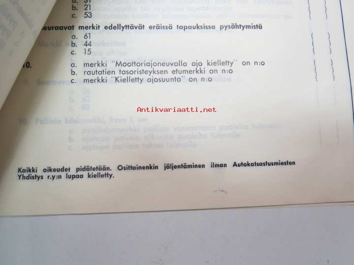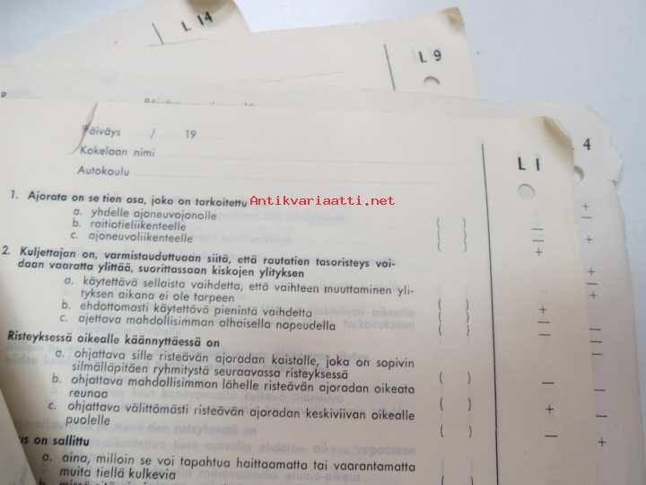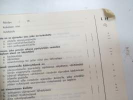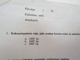 Ajokorttikokeen koekysymykset K 1 - K 10 & L 1 - L 20 / Autokatsastusmiehet ry kysymyssarjat 1960-luvulta(?)