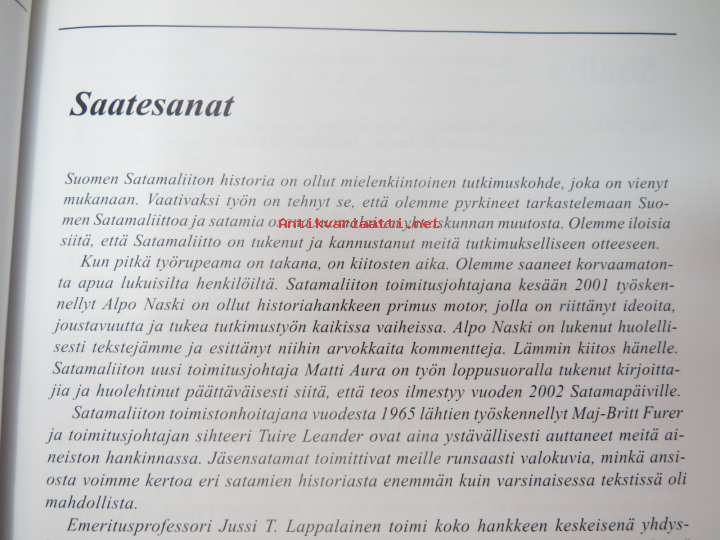 | Saatavilla | 1 kpl | | Julkaisuvuosi | 2002 | | Sivuja | 332 | | Painos | 1. | | Kunto | K3 | | Sidonta/painoasu | Sidottu (kansipaperit) | | ISBN | 952-91-4496-2 | | Kielet | Suomi |
