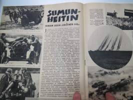 Hakkapeliitta 1943 nr 36, Sumunheitin Saksan uusin "salainen ase", Partisaanien uhrien hautajaiskuva, Neuvostolan myrskyisssä - suomalaiskohtaloita, Uudisrakentaja