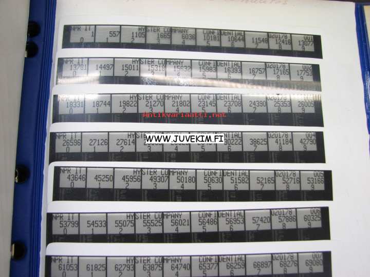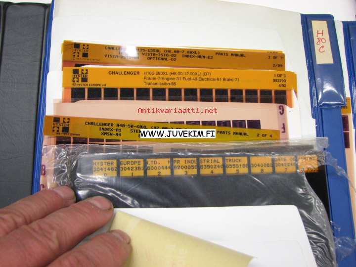 Hyster trukit -kansiollinen varaosaluetteloita mikrofilmeinä - Hyster forklifts -binder of parts catalogs in microfilm card format