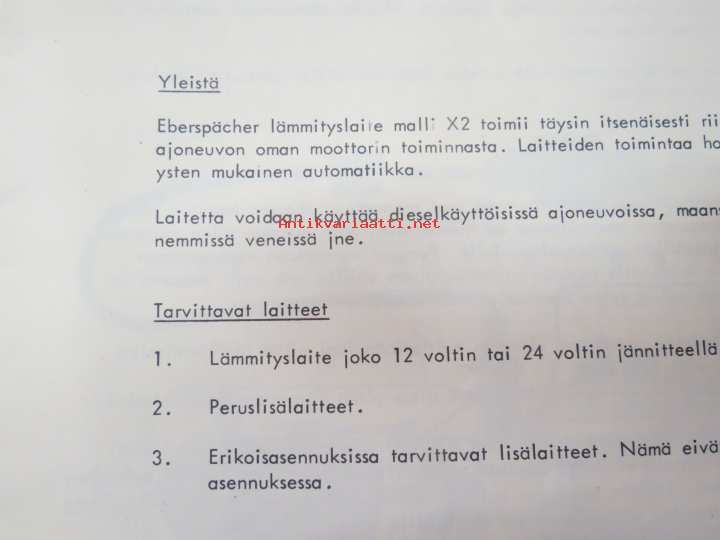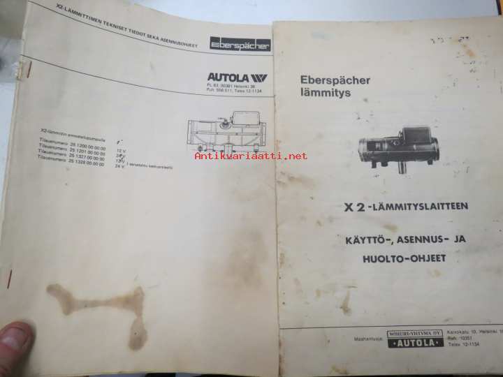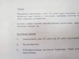 Eberspächer X2 -lämmityslaitteen käyttö-, asennus- ja huolto-ohjeet, 2 eri julkaisua -heater manuals in finnish