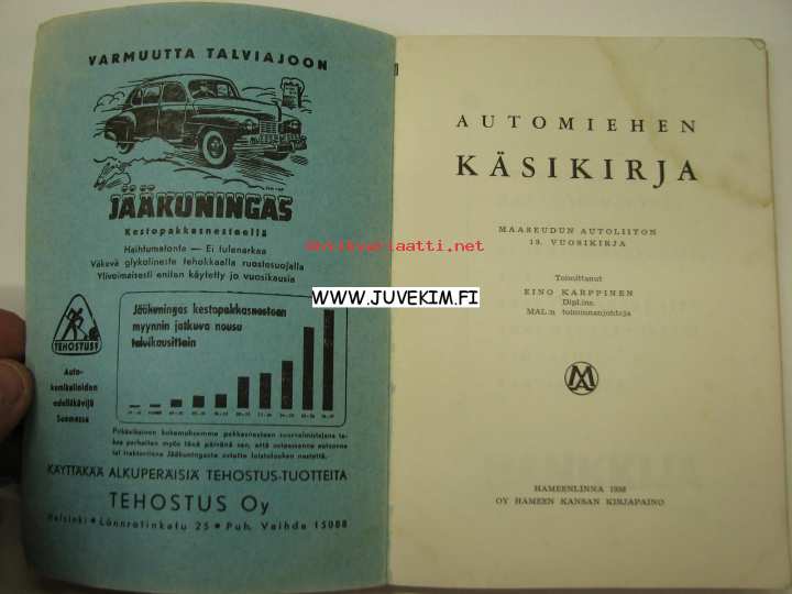 Karppinen Eino, Maaseudun Autoliitto R.Y., 1958 12 x 18 cm kirja.