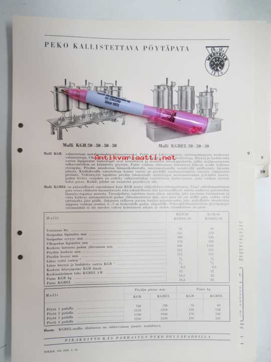 Wärtsilä Peko kallistettava pöytäpata malli KGB/50+50+50+50, KGBEL/50+5++30 -myyntiesite / brochure