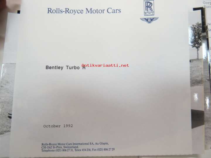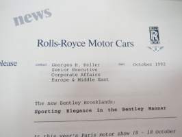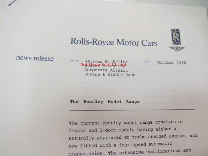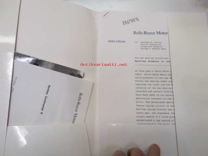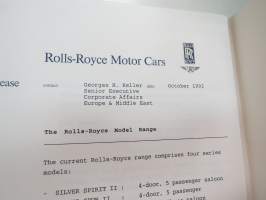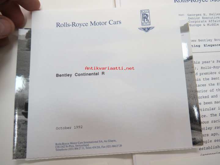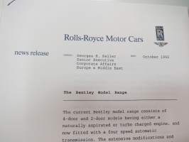 Rolls-Royce Corniche IV news release + 4 pcs press photographs -lanseerausesite + 4 kpl pressikuvia