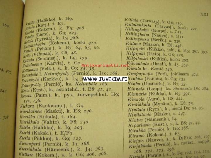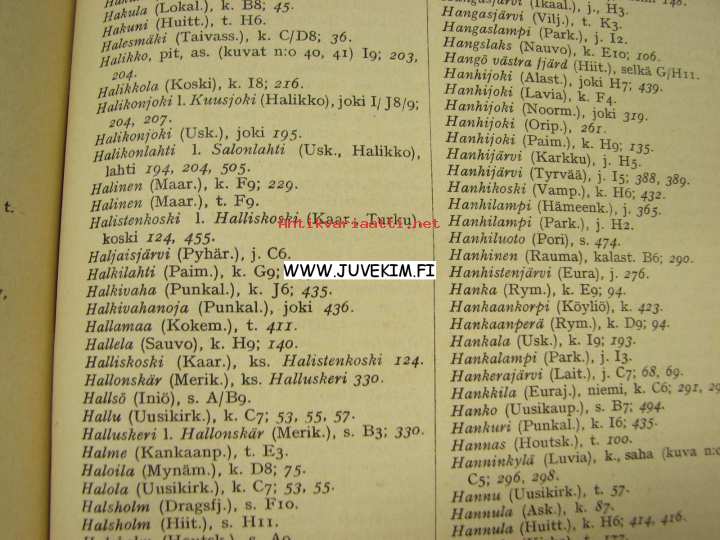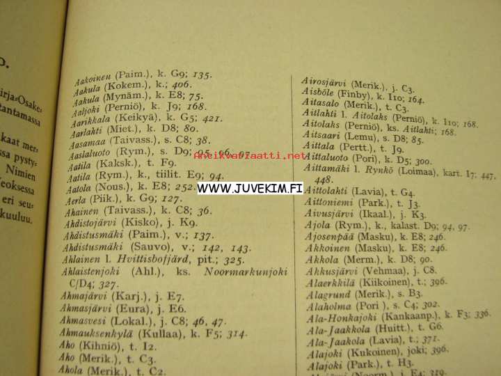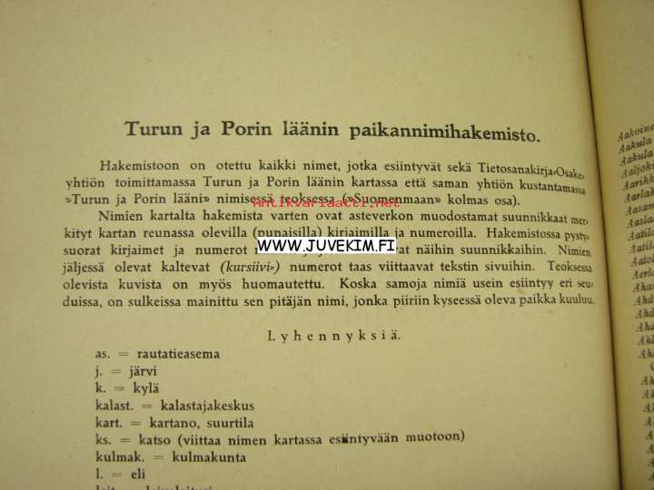 Turun ja Porin läänin kartta -nimihakemisto (ei karttaa mukana)