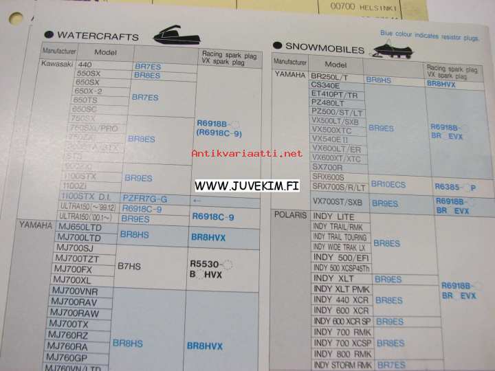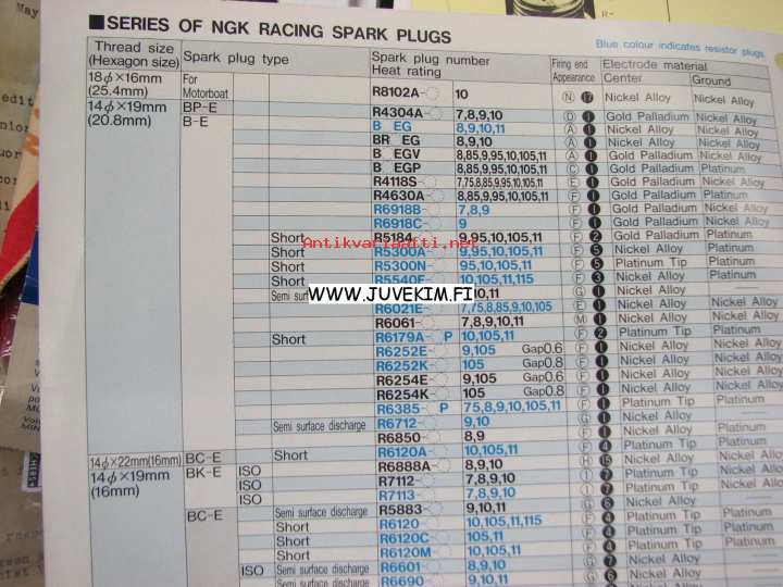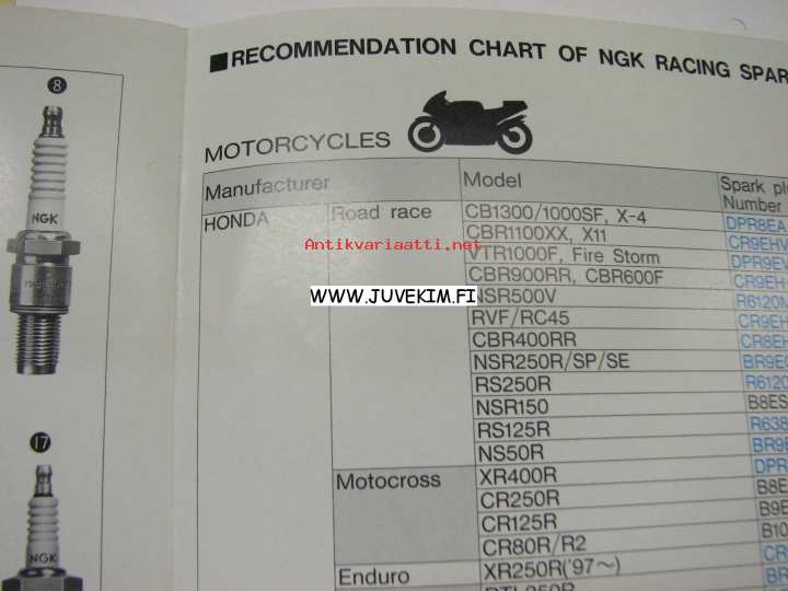 NGK Racindg spark plugs 2000 -sytytystulppaluettelo