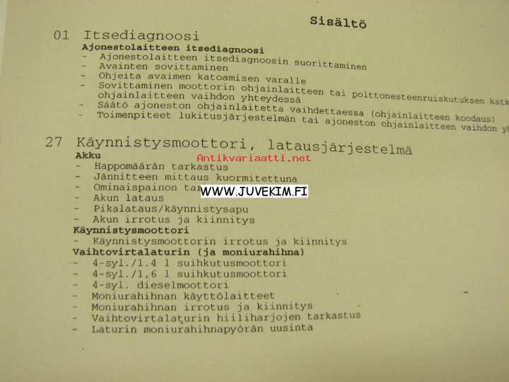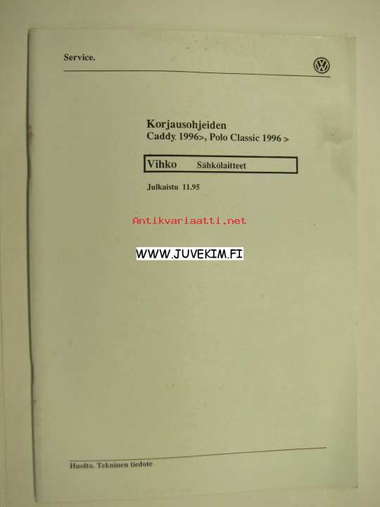 Volkswagen Caddy>, Polo Classic 1996> Korjausohjeiden vihko; sähkölaitteet -korjaamokirjasarjan osa