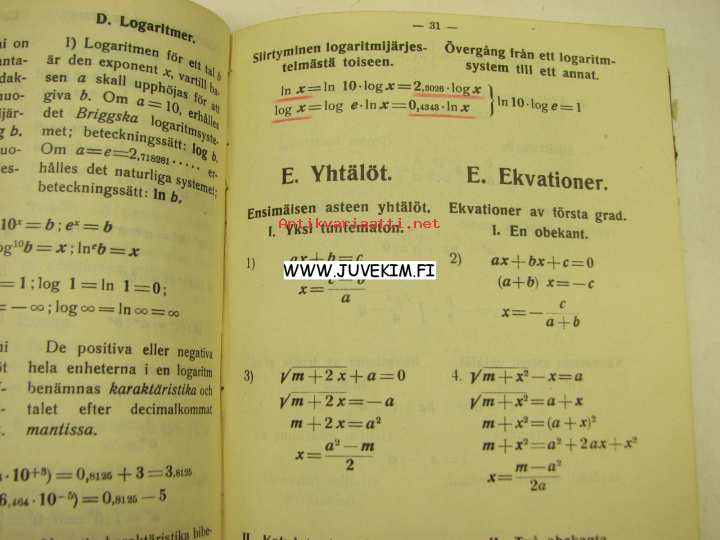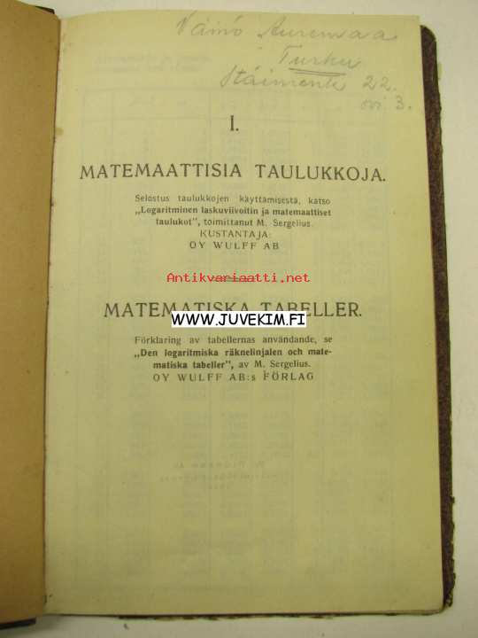 Sergelius, Wulff, 19?? 13 x 20 cm kirja. Wullffin kustantama, painottuu laskutikun käyttöön ja hyödyntämiseen matemaattisissa tehtävissä.