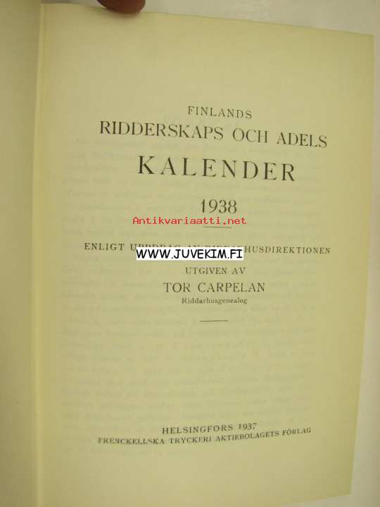 Finlands ridderskaps och adels kalender 1938 -aateliskalenteri