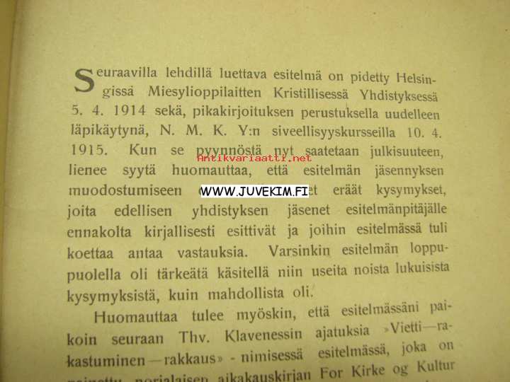 Saatavilla 1 kpl Julkaisuvuosi 1910 Sivuja 21 Kunto K2 Sidonta/painoasu Nidottu (pehmeäk.) Kielet Suomi