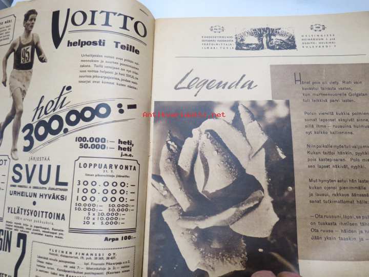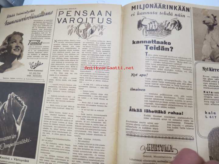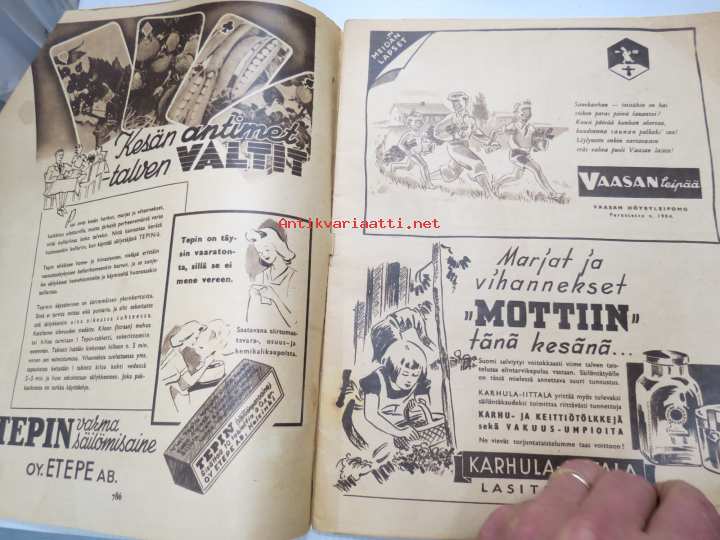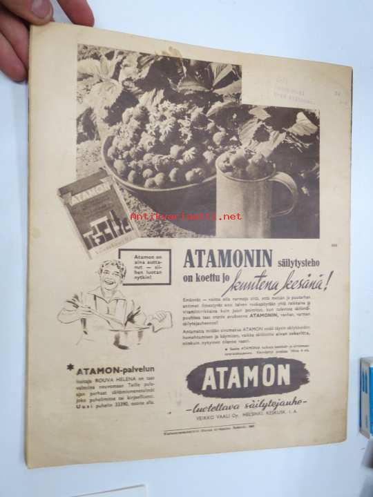 Kotiliesi 1955 nr 2 , tammikuu . Aiheita kiiltävät kihlat, Saivo koko sivun värimainos. Takakannessa UPO pulsaattoripesukone -mainos,