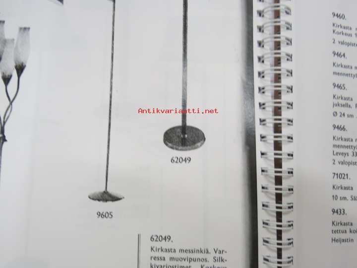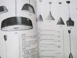 22 x 30 cm, kopio. Idman Koristevalaisinluettelo - Idmanin valaisintehtaan Koristevalaisinluettelon 1953 näköispainos. Valaisinten suunnittelijoina mm. Paavo Tynell, Tapio Wirkkala, Mauri Almari ja Maria Lindeman (valaisimia ei ole nimetty suunnittelijoiden mukaan) -Luettelossa on 78 sivua + kannet, sivuilla on valaisinten mallinumerot, valmistusmateriaalit, mitat ja valopisteiden määrä. Luettelo sisältää kattovalaisimet, seinävalaisimet, pöytävalaisimet, lattiavalaisimet ja varjostimia ja kupuja. Tämä on hyvä tietopaketti suomalaiseen valaisinsuunnitteluun 1950-luvulta. Luettelossa on selailua helpottava kierresidonta.