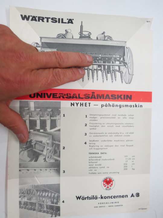 Wärtsilä Universalsåmaskin - Traktor-Tulos såmaskin -myyntiesite ruotsiksi / sales brochure