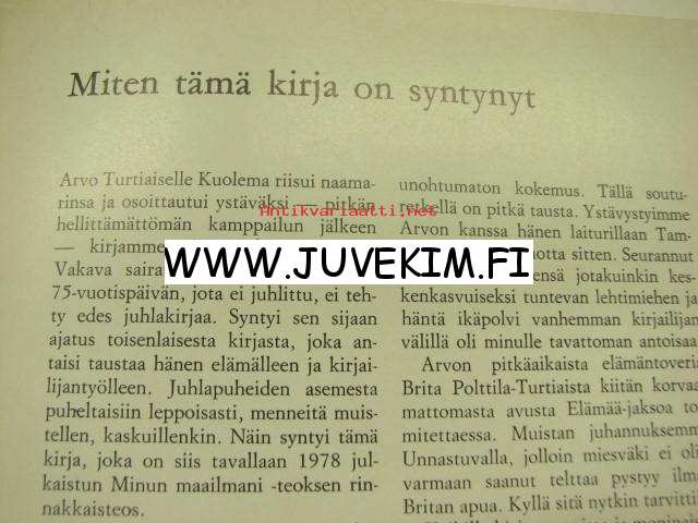 Turtiainen Arvo, Kustannusosakeyhtiö Tammi, 1980 17 x 24 cm kirja.