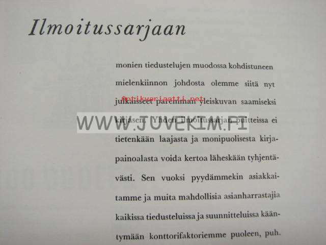 Kirjapainotaidon historiaa ja nykyaikaa -ilmoitussarja koottuna