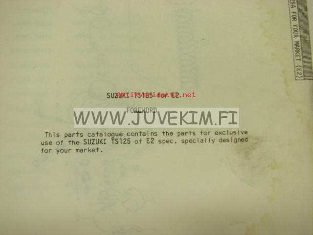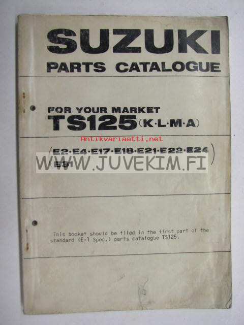 Suzuki TS125 (K/L/M/A) (E2, E4, E17, E18, E21, E24, E31) parts catalogue -varaosaluettelo englanniksi