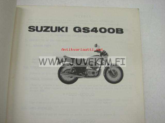 Suzuki GS400B parts catalogue -varaosaluettelo englanniksi