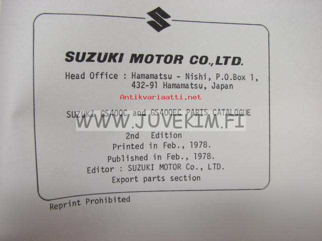 Suzuki GS400C / GS400EC parts catalogue -varaosaluettelo englanniksi