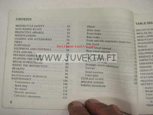 Honda MBX125F owner´s manual -käyttöohjekirja englanniksi
